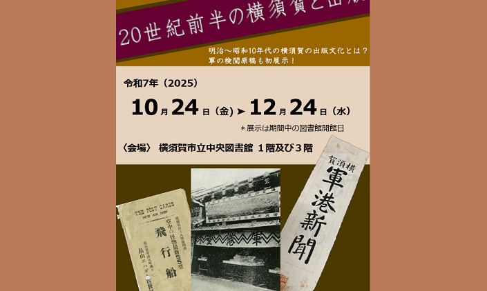 10 月 24 日(金)から2 月 24 日(水)まで横須賀市立中央図書館 1 階及び 3 階において企画展示「20世紀前半の横須賀と出版」が開催されています。