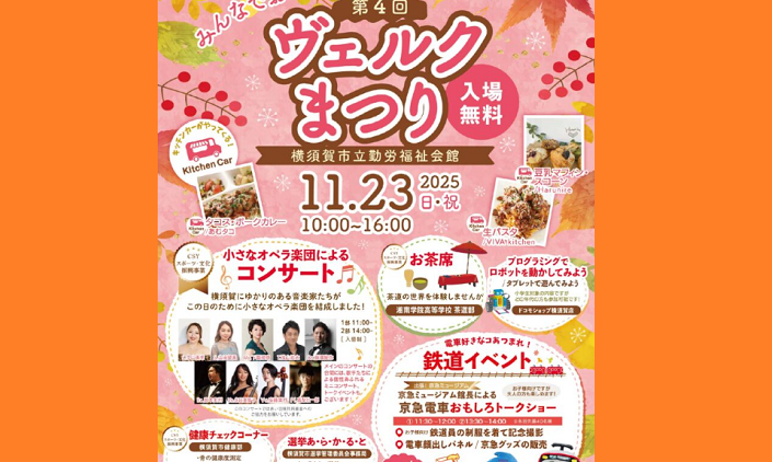 11月23日(日)10時から16時まで横須賀市勤労福祉会館(ヴェルクよこすか)において第4回ヴェルクまつりが開催されます。