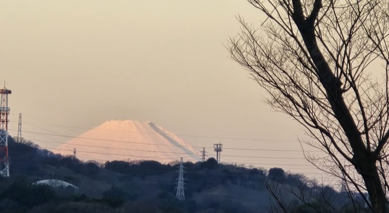あいにく初日の出は雲が多く、雲間からの朝日となりましたが、富士山は横須賀からもよく見え、うっすらと赤富士が映し出されました。