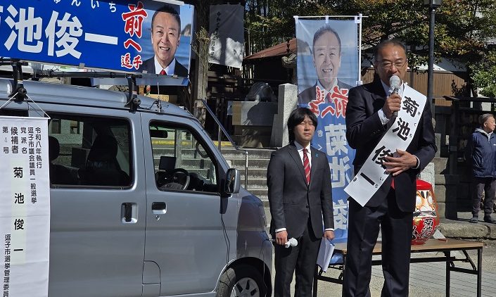 私は自民党公認は取っていませんが、25年来の友人である菊地俊一候補の応援へ…