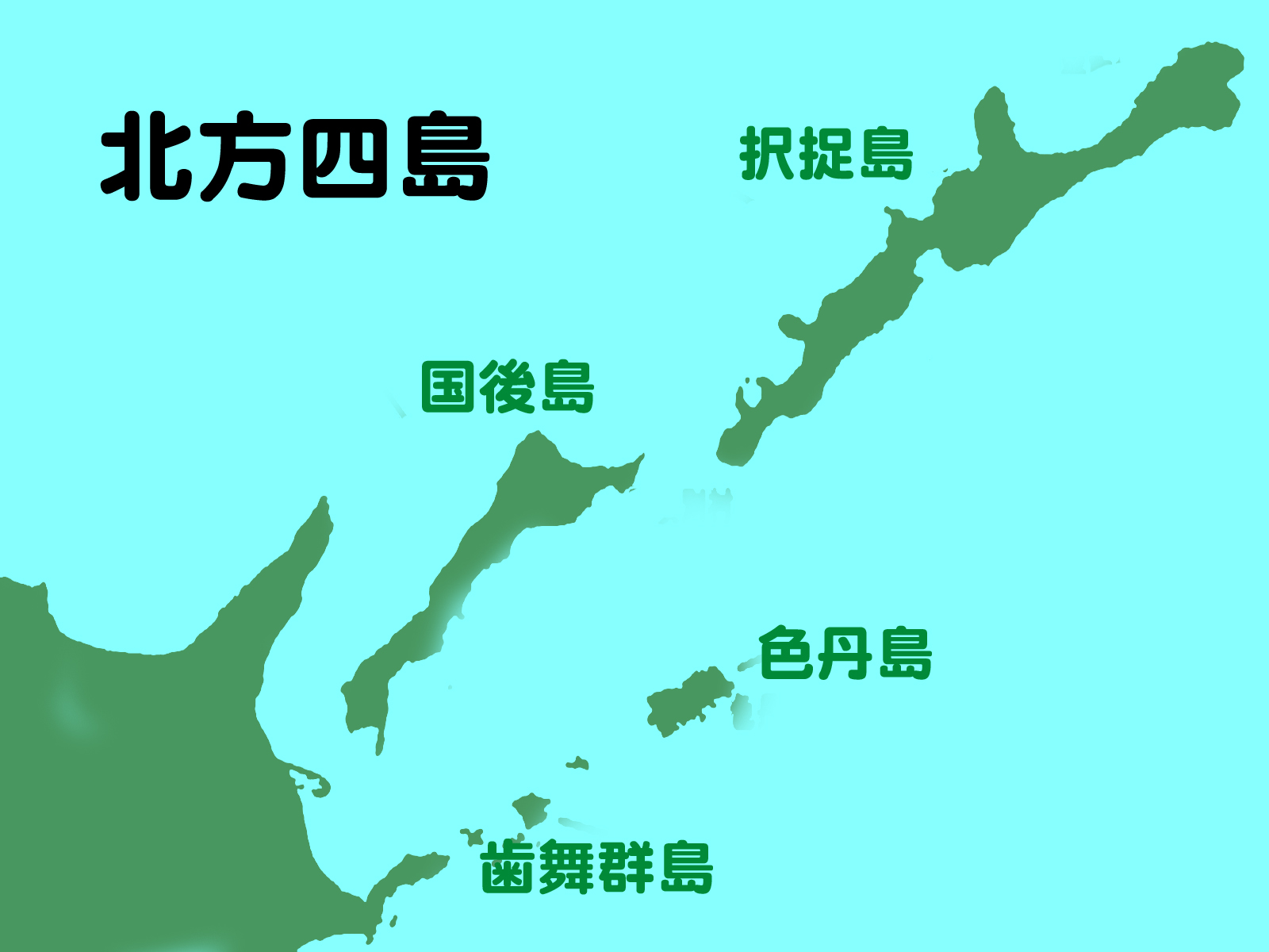 こんばんは。西郷宗範です。「北方領土」は、北海道本島の北東に位置する歯舞(はぼまい)群島…
