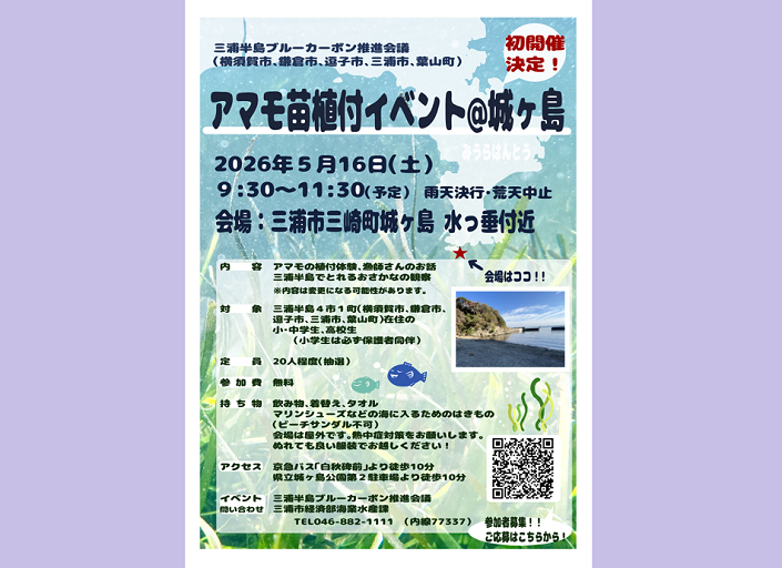こんばんは。西郷宗範です。横須賀市では、藻場が消失する「磯焼け」対策として、漁業協同組合…
