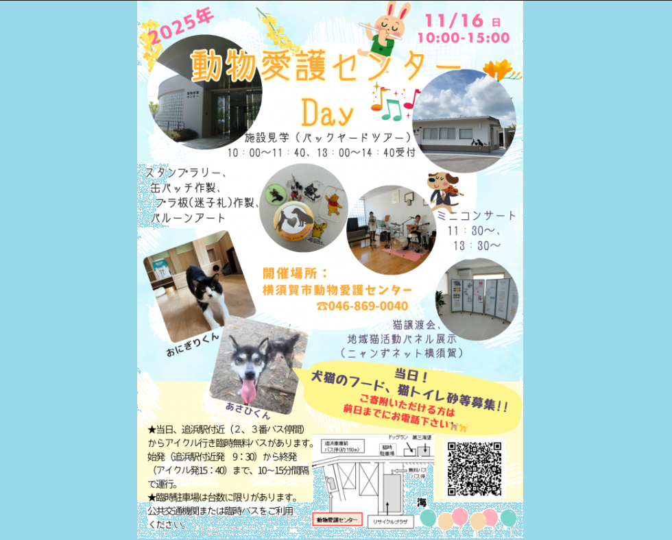 こんばんは。西郷宗範です。11月16日(日)10時から15時まで横須賀市動物愛護センター…