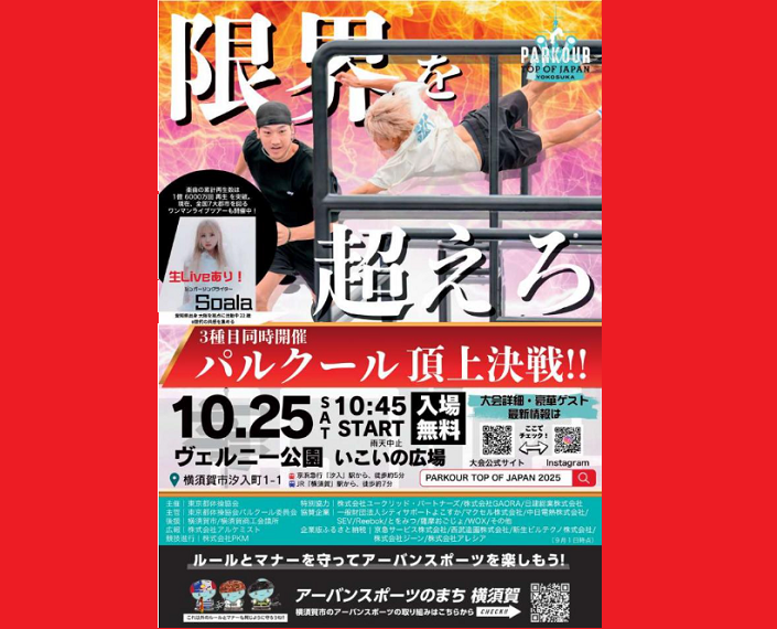 こんばんは。西郷宗範です。東京都体操協会パルクール委員会は、横須賀市と連携し2025年1…