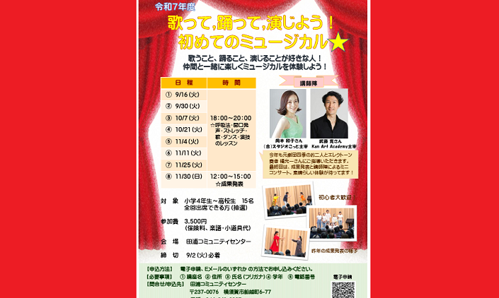 田浦・追浜・逸見コミセン講座『歌って踊って演じよう!初めてのミュージカル』が今年も開催されます。