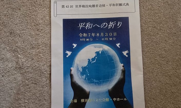 きょうは三浦半島宗教者平和会議主催の第43回世界戦没殉難者追悼・平和祈願式典へ参列しました。