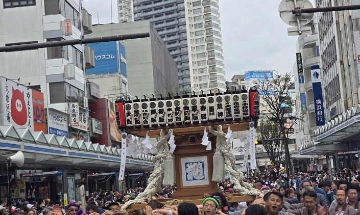 約50基のみこし・山車が集結し、威勢のいい掛け声やお囃子とともに横須賀中央大通りをパレードします。
