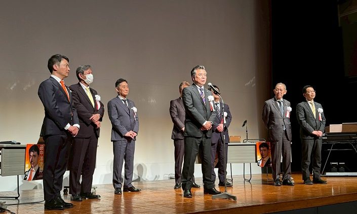 来賓として上地克明横須賀市長、わき雅昭参議院議員、伊藤聡衆議院議員、しきだ博昭県議会議員が挨拶され、市議会議員も登壇…