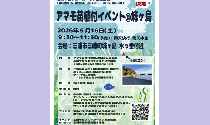 三浦半島4市1町ブルーカーボンプロジェクト「アマモ苗植付イベント@城ヶ島」開催