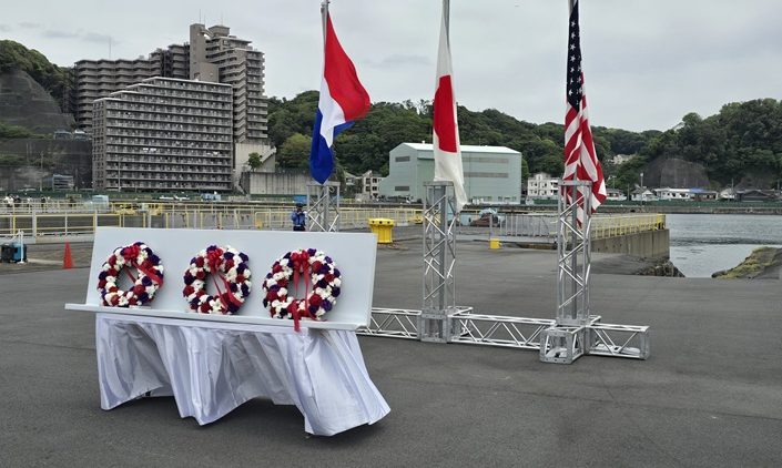 駐日オランダ王国大使代理、駐日米国大使代理、そして上地市長による花輪が供呈されました。