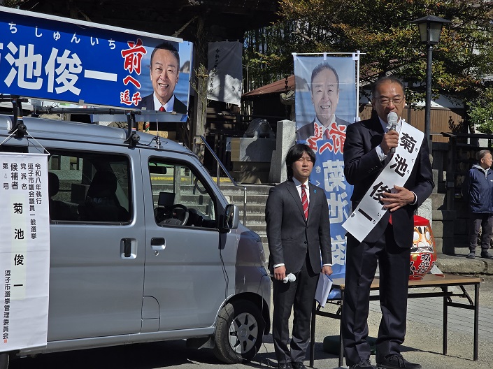 こんばんは。西郷宗範です。きょう逗子市議会議員選挙が告示されました。自民党からは3人の公…