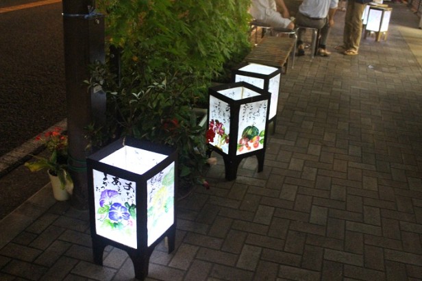 毎年、地元の皆さんを中心に描かれた様々な灯ろうが上町商店街を彩ります。