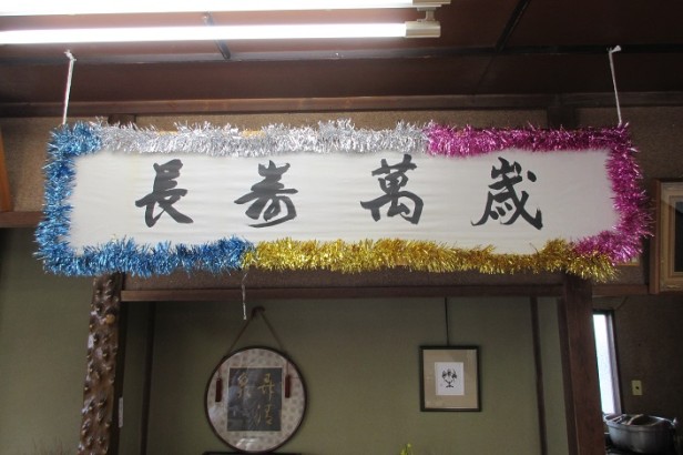きょうは町内の青年会員の娘さん(2歳)が「おじいちゃんおばあちゃんにおめでとう」と言いたいと飛び入り参加…