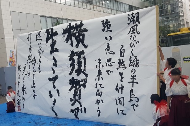 会場についてしばらくすると市立総合高校書道部のパフォーマンスが始まりました。