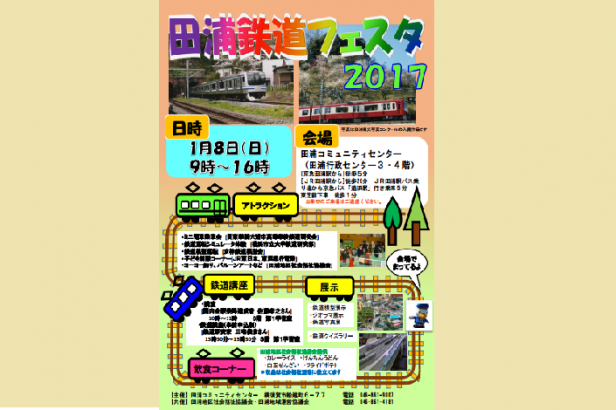 1月8日(日)9時から16時に田浦コミュニティセンター(田浦行政センター3・4階)において「田浦鉄道フェスタ ~鉄道大好きは、田浦に集まろう~」が開催されます。