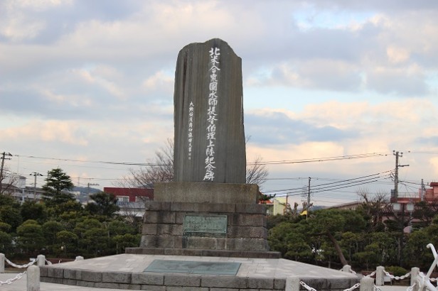 公園を入ると正面には「北米合衆國水師提督伯理上陸記念碑」が…