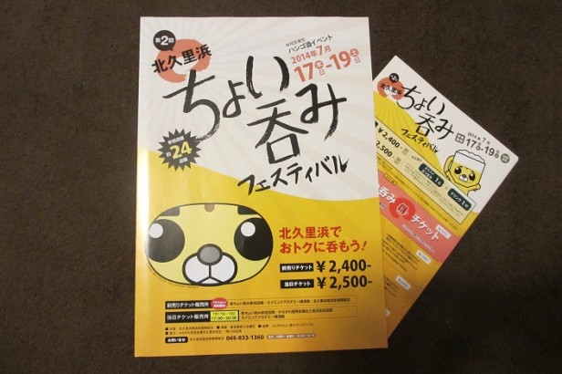 3枚のちょい呑みチケット+300円相当のおつまみと交換できるマル得チケットがついて、開催前日の明日までは前売り価格の2,400円で買えちゃいます。