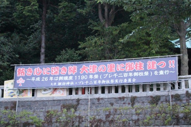 これは大津諏訪神社のプレ千二百年として行われるもので、長さ11m、重さ4トンの大木を曳いて神前に奉納するものです。