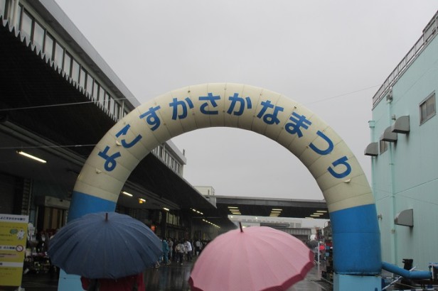 あいにくの荒天ですが、よこすかさかな祭りは元気に開催!