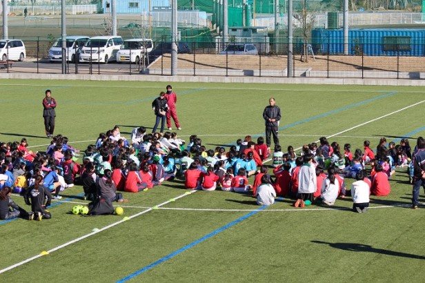 小学生の面倒をみるジュニアユースの選手たちやママさんチームの皆さん、そしてなでしこリーグの選手たち…