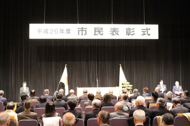 毎年、市制記念日の前後に地域振興や文化振興などに貢献した方々を表彰しています。