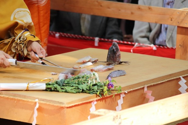式典の神事後に行われる四條古流の包丁式奉納も多くの方が見入っていました。
