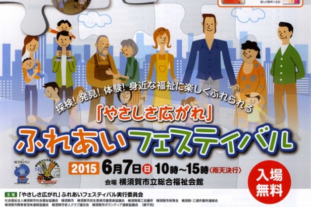 6月7日(日)の10時から15時に横須賀市総合福祉会館において「やさしさひろがれ」ふれあいフェスティバルが開催されます。