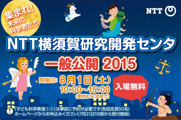 8月1日(土)にNTT横須賀研究開発センタにおいて「集まれ!未来の科学者たち NTT横須賀研究開発センタ 一般公開2015」が開催されます。