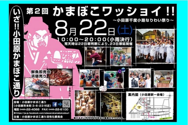 8月22日(土)10時から20時に小田原の名物「蒲鉾」を生産・販売する老舗が並ぶ本町から浜町の旧街道沿い(通称:かまぼこ通り)において「第2回かまぼこワッショイ!」が開催されます。