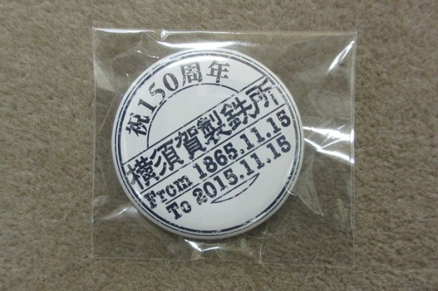 横須賀製鉄所150周年のPRのため記念缶バッジが制作されたということでPR用に支給されました。