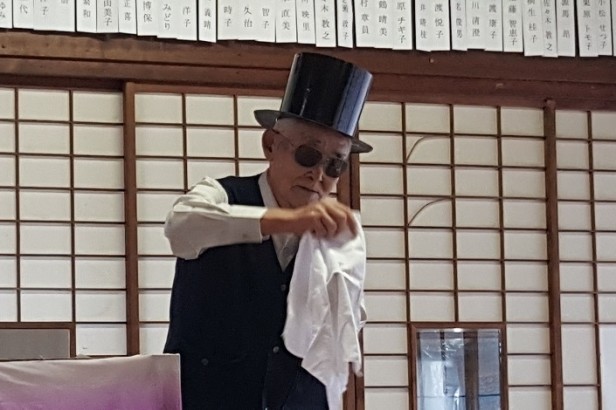 きょうの敬老会では御歳90歳のマジシャンが場を盛り上げてくれました。