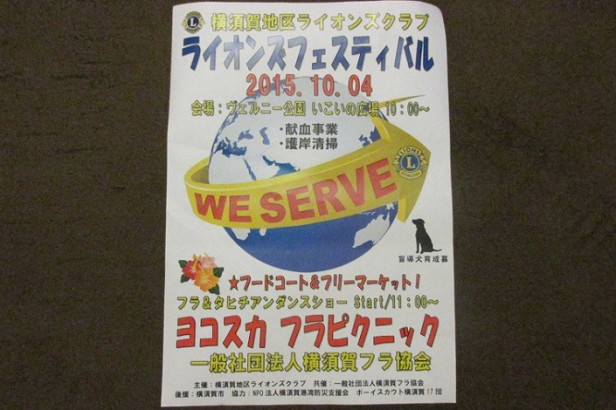 10月4日(日)10時よりヴェルニー公園において横須賀地区のライオンズクラブが集まり行う統一奉仕活動「ライオンズフェスティバル」が開催されます。