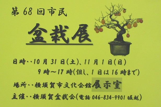 10月31日(土)及び11月1日(日)の二日間、横須賀市文化会館展示室において第68回市民盆栽展が開催されます。