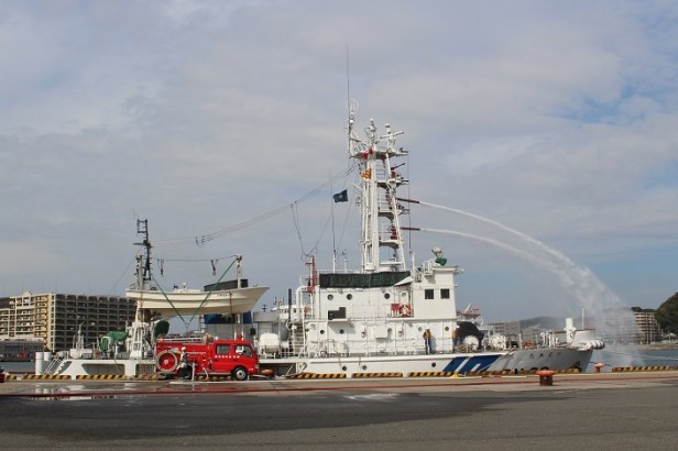 今回は海上保安部も協力して海上からの消火訓練も併せて行われました。