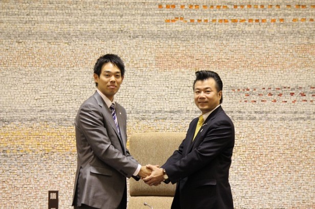 授与式の前には議会にもお越しいただき、本日参加できた議員との集合写真やツーショット写真などを取らせていただきました。
