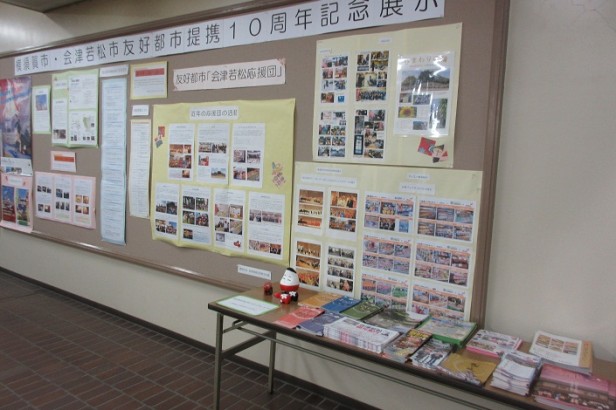 会津若松市と横須賀市の友好都市提携10周年を記念して、市役所1階展示コーナーにおいて、昨日12月21日(月)から12月25日(金)まで横須賀市・会津若松市友好都市提携10周年記念展示が開催されています。