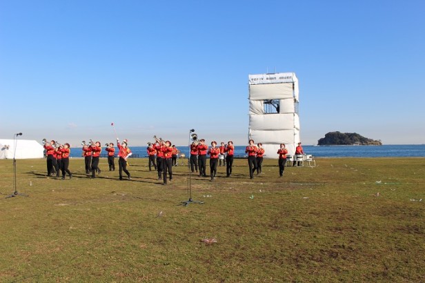 オープニングには消防団音楽隊のオープニングドリルや観閲行進が行われ41の分団や協力団体など約1000人の行進します。