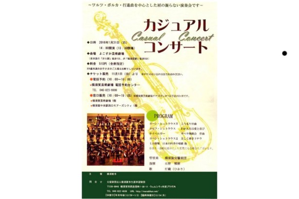 1月31日(日)によこすか芸術劇場で開催される「カジュアル・コンサート」のチケット販売が行われています。