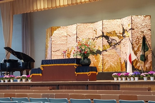 私たちの頃は総代が答辞を述べるというスタイルだったのですが、いまは在校生や卒業生はそれぞれの役割のセリフがあり全員でポイントとなる言葉を言う、また、卒業生はステージの前に並び合唱するというスタイル…
