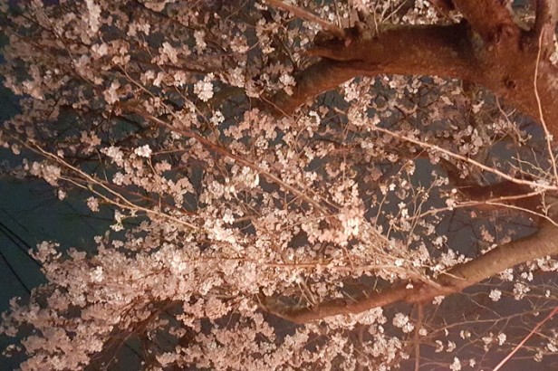 到着時はまだ少し明るかったのですが、帰る頃には暗くなり、ライトアップした桜がとてもきれいです。