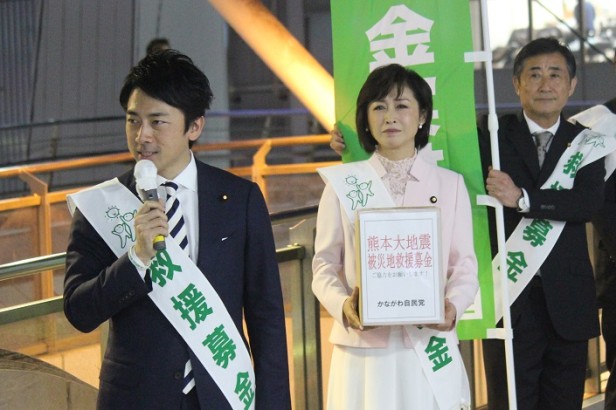 当初は街頭演説の予定でしたが、熊本地震の発生に伴い被災地救援募金を行うことにしました。
