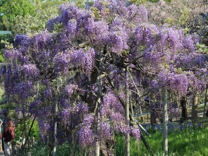 見上げると藤色の天井が木漏れ日を受けて輝く姿は、この時期のだいご味ですね。…