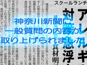こんばんは。西郷宗範です。 きょうの神奈川新聞に先日の一般質問に関わる記事が掲載されました。 スクールランチのアレルギー対策… …